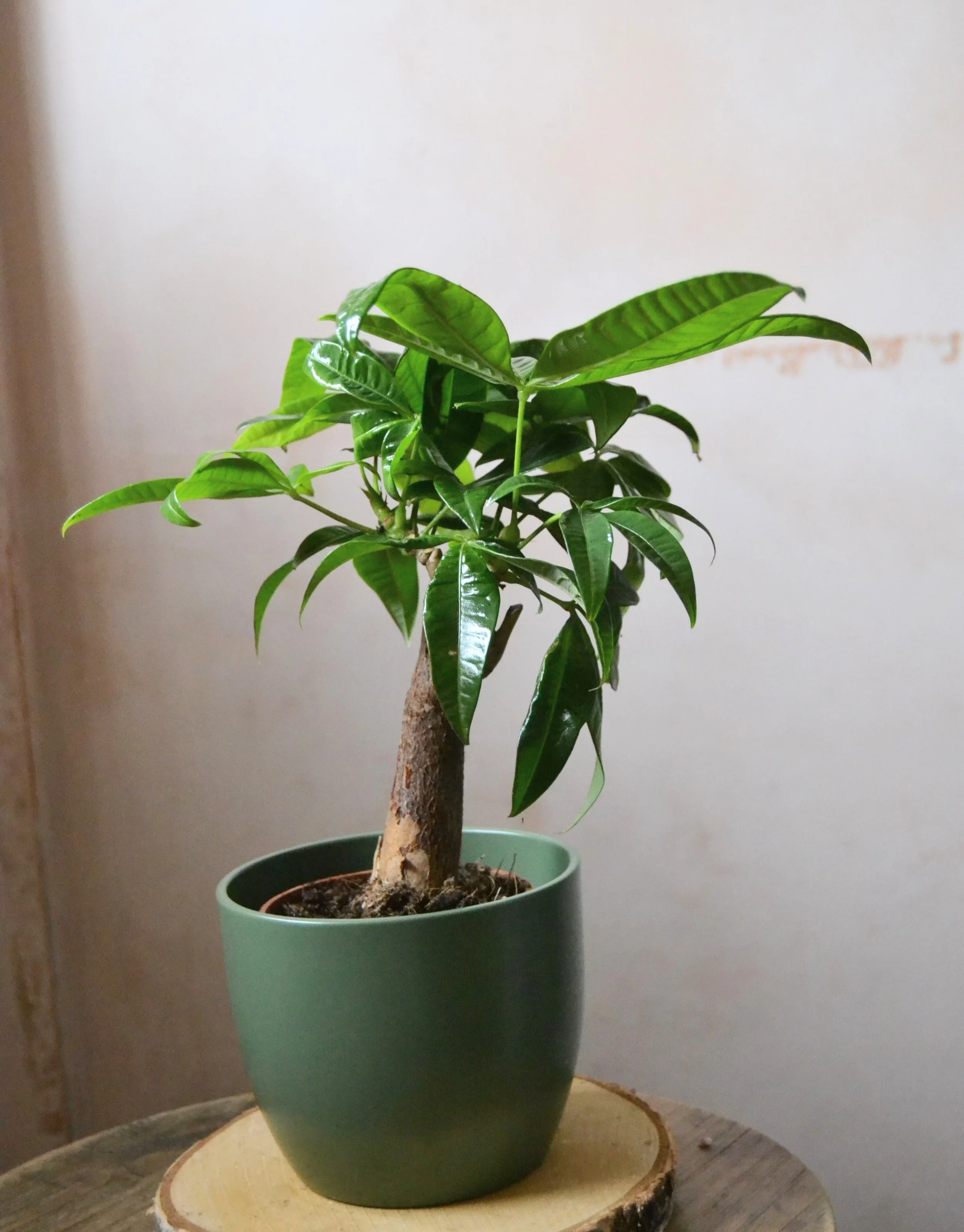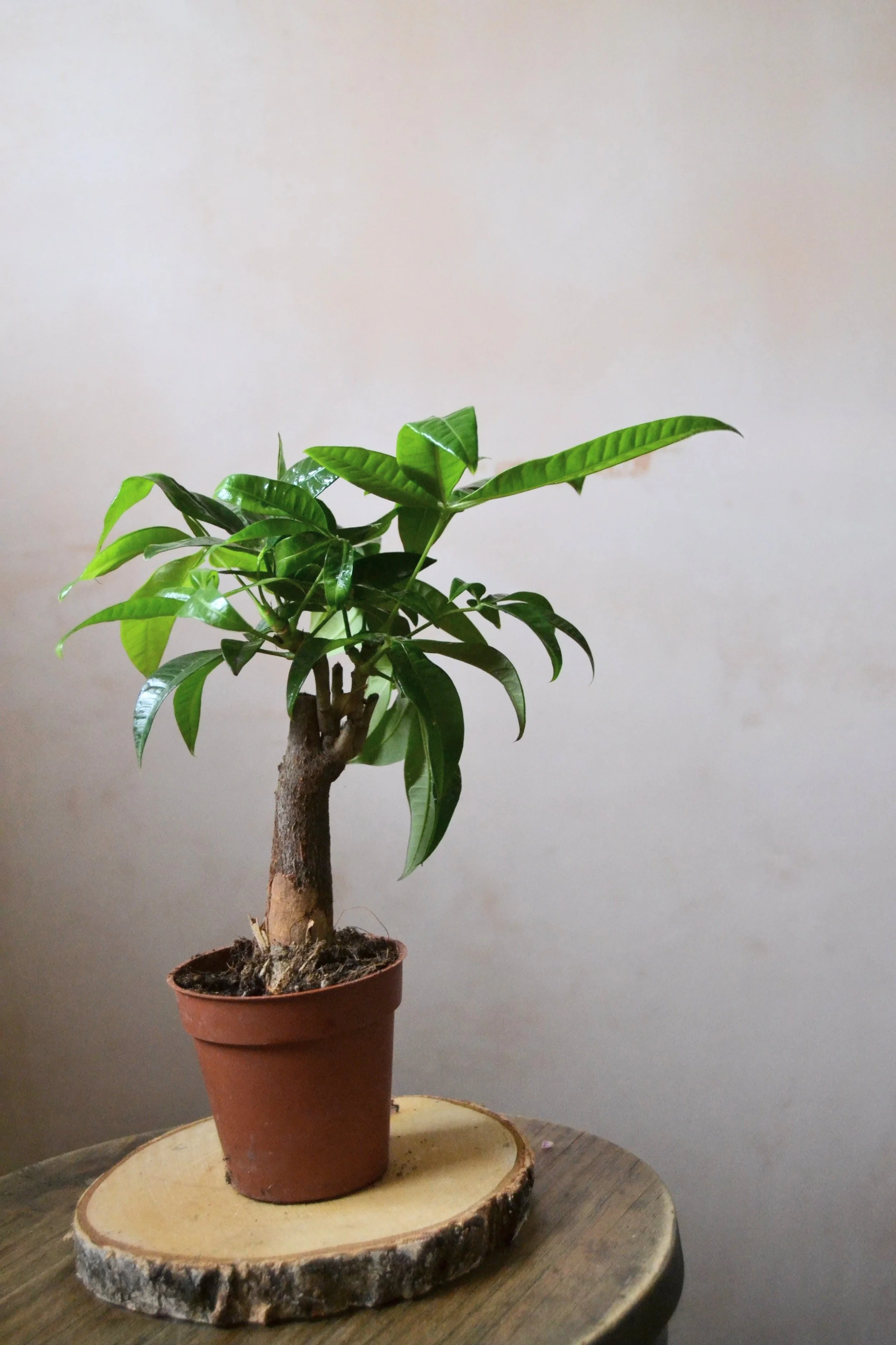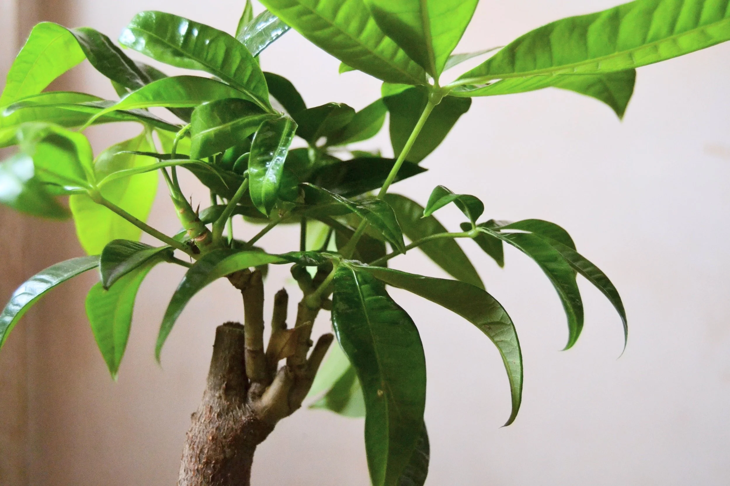 Pachira aquatica is a easy to care tropical tree from south America. The five lobed leaves are believed to bring good luck.
